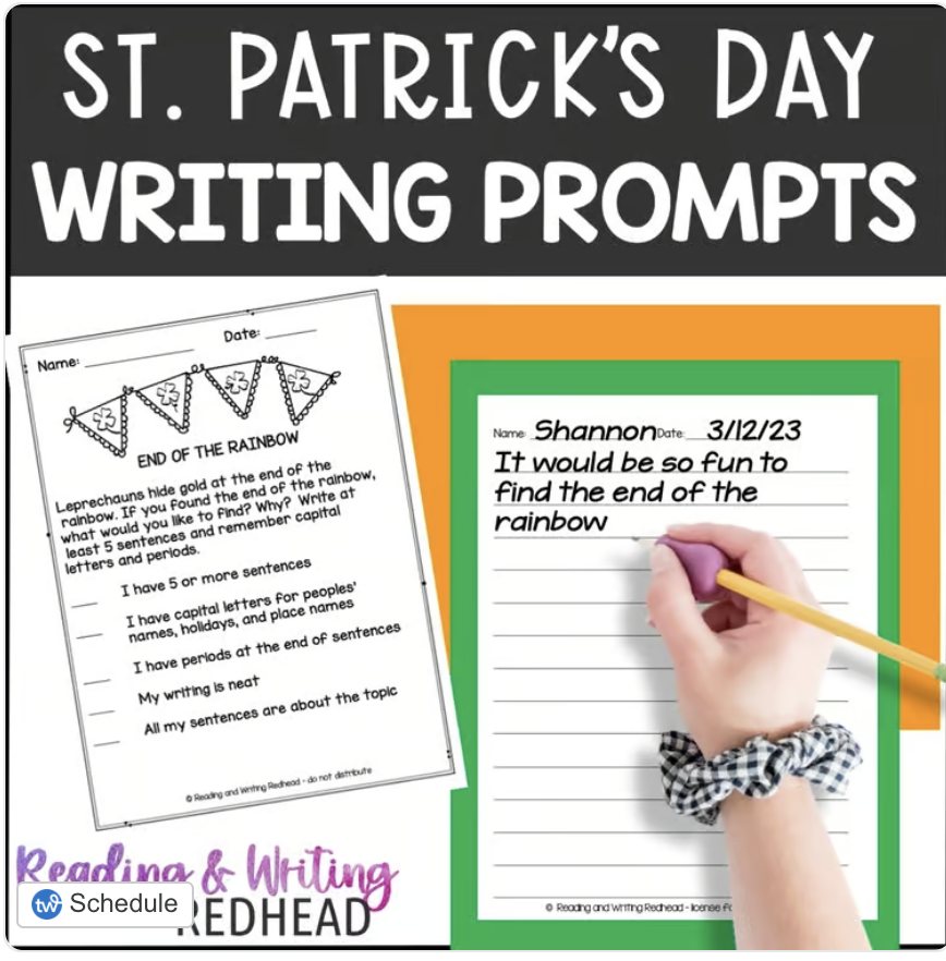 Need a writing prompt for St. Patrick’s Day? Grab this dollar deal! Students will write about what they would like to find at the end of the rainbow, and how they would prepare for a leprechaun’s visit. Includes lined writing paper and checklists for accountability so all you need to do is print and copy!